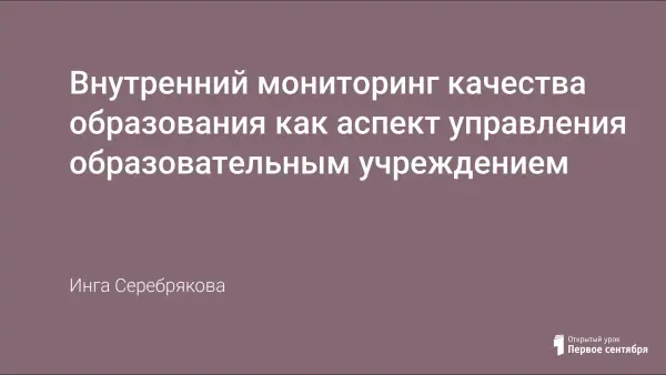 Предложены ответы на вопросы: как правильно организовать внутри ОУ мониторинговые процедуры и распределить имеющиеся ресурсы? что выбрать в качестве объекта внутреннего мониторинга? как эффективно осуществлять его?