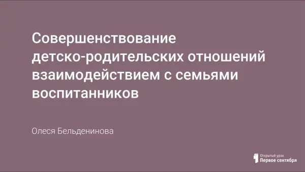 Совершенствование детско-родительских отношений взаимодействием с семьями воспитанников