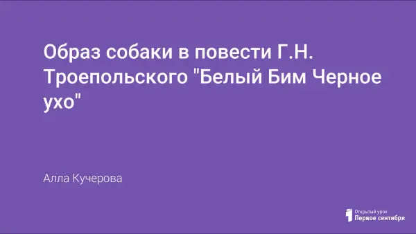Урок литературы (внеклассное чтение) знакомит с образом собаки в произведении Г.Н. Троепольского, развивает умение классифицировать героев по заданному признаку, а также воспитывает учащихся в духе толерантности, любви к животным.