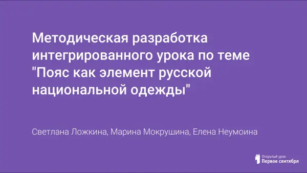 Методическая разработка интегрированного урока истории, технологии и информатики служит формированию знаний о поясе как элементе русского народного костюма, выявлению значение пояса через применение навыков ремесленного производства, компьютерных технологий и исторических знаний. В ходе проведенного занятия обучающиеся получают знания по истории России, осваивают приемы плетения в технике «дерганья» и закрепляют навыки создания презентаций.