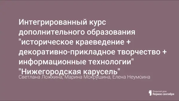 Интегрированный курс дополнительного образования "историческое краеведение + декоративно-прикладное творчество + информационные технологии" "Нижегородская карусель"
