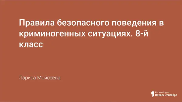 Цель урока: познакомить учащихся с правилами поведения в криминогенного ситуациях.
