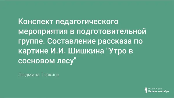 Цель мероприятия: развитие способностей воспринимать и понимать пейзажную живопись, высказываться по содержанию картины и формулировать свои впечатления; закрепление представлений о структуре текста; формирование умения анализировать структуру высказывания; развитие умения самостоятельно составлять план повествования; умение раскрывать тему и основную мысль повествования с соблюдением логики изложения и использованием средств художественной выразительности.