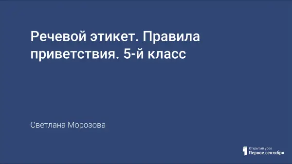 Урок знакомит учащихся с понятием «речевой этикет», правилами приветствия. В игровой форме учащиеся учатся взаимодействовать с другими людьми, применять знания в общении, ценить язык, культуру, народ.