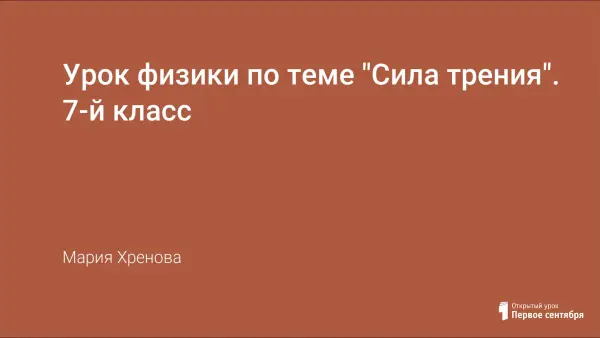 Урок дает представление о силе трения. Знакомит с тем, от чего зависит сила трения. Все эти представления о силе трения сопровождаются фронтальными экспериментами, которые проводят сами учащиеся и учитель и делают соответствующие выводы.