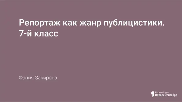 На уроке используются средства и приёмы учебной деятельности, направленные на формирование у учащихся навыков написания сочинения-репортажа и умения составлять свое высказывание. Слайдовый материал позволяет наглядные представления о репортаже как жанр публицистики.