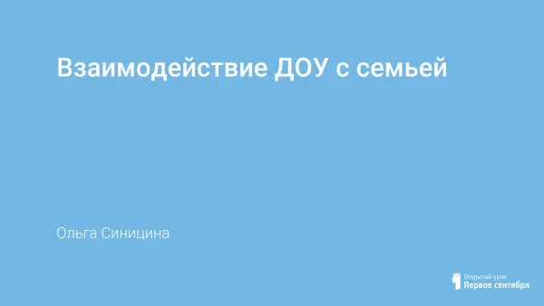 В статье подчеркивается, что в основе взаимодействия дошкольного учреждения и семьи лежит сотрудничество, т. е. совместное определение целей деятельности, распределение сил, средств, предмета деятельности во времени в соответствии с возможностями каждого участника, совместный контроль и оценка результатов работы, прогнозирование новых целей, задач и результатов.