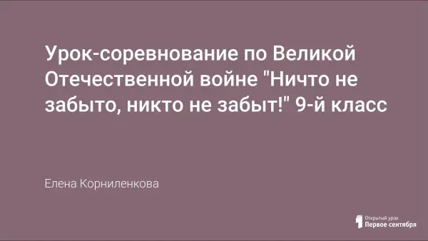 Урок проводится после изучения курса по Великой Отечественной войне 1941‒1945 годов, обобщает тему. Цель урока: воспитание чувства патриотизма и любви к родине, воспоминания о тех, кто подарил Победу.