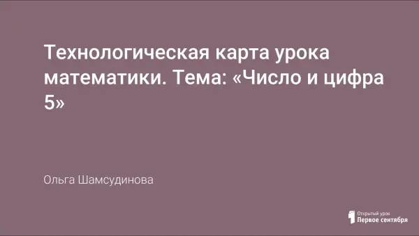 Представлена технологическая карта урока по теме «Число и цифра 5».