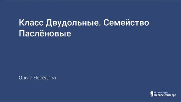 Урок позволяет сформировать знания о признаках растений семейства Паслёновые, изучить признаки, по которым растения семейства паслёновые отличаются от растений других семейств. Узнать о роли растений семейства паслёновые в жизни человека. Получить дополнительную информацию о растении, давшем название семейству - паслёне, и его многообразии.