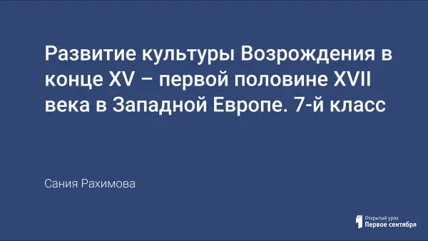 Урок всемирной истории знакомит с деятелями эпохи Возрождения и их произведениями. Развивает умение учащихся критически мыслить, работать с учебником.