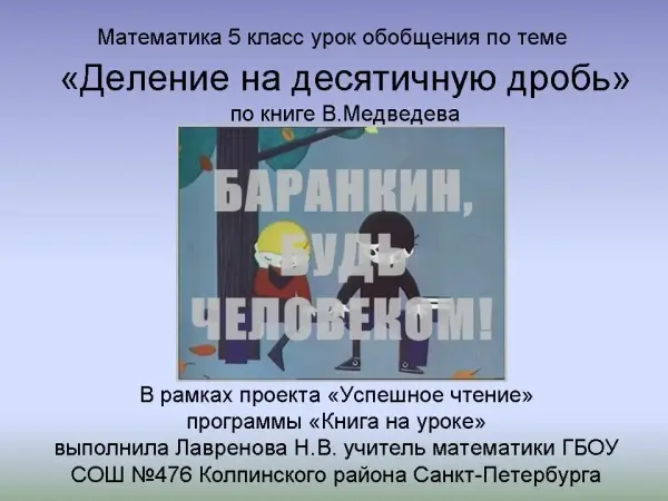 Одним из эффективных путей приобщения к чтению школьников стал проект "Успешное чтение". Автор, работая по одной из программ проекта "Книга на уроке", предлагает совершить необычное путешествие в мир книги, почувствовав себя историками, первооткрывателями, художниками. Вместе с Баркиным, персонажем книги В.Медведева, учащиеся попадают в различные ситуации и находят решения выхода из них.