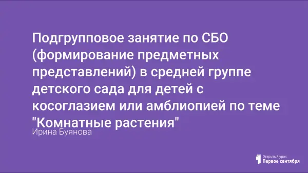 Материал адресован тифлопедагогам и воспитателям, работающим с детьми 5-го года жизни с косоглазием или амблиопией. В процессе беседы и дидактических игр дети знакомятся с комнатными растениями, их строением, учатся различать и сравнивать комнатные растения по форме листьев, стеблю, цветам.
