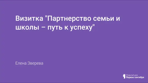 Каждый учитель за педагогическую деятельность хоть один раз задается вопросом: «Учитель – это профессия или призвание?». Подведение неких итогов и размышление об одном дне своей педагогической деятельности описывается в визитке «Партнерство семьи и школы – путь к успеху».