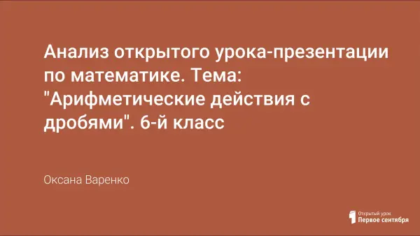 Анализ открытого урока-презентации по математике. Тема: "Арифметические действия с дробями". 6-й класс