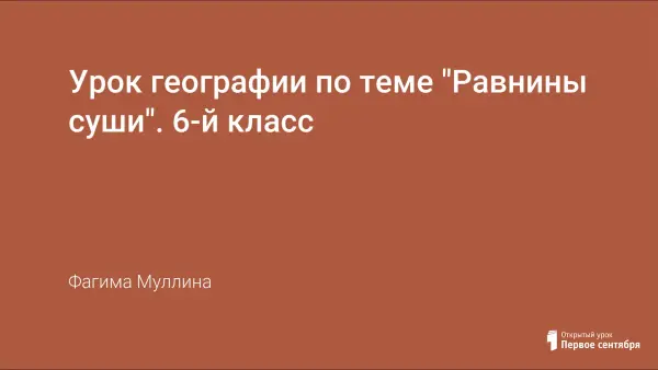 Урок формирует представление о видах равнин. Учащиеся определяют по карте холмистые, плоские равнины, низменности, возвышенности, плоскогорья.