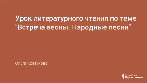 Цели урока: знакомство с традицией встречи весны на Руси, русскими весенними народными праздниками, разучивание песен-веснянок. У детей развивается устное творчество, интерес к русскому народному фольклору; воспитывается уважение к истории страны и ее традициям.