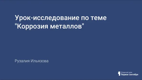 Цель урока-исследования: самостоятельная проблемно-поисковая деятельность учащихся; знать определение коррозии, ее виды и способы защиты. Учащиеся формулируют проблему, ищут способ решения, проверяют возникшие гипотезы, проводят эксперимент, делают вывод.