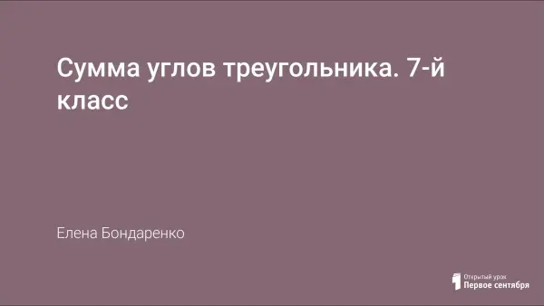 В ходе практической работы учащиеся выдвигают гипотезу о сумме углов треугольника и пытаются доказать ее. На этапе получения новых знаний учащиеся мыслят как первооткрыватели. Урок включает в себя практическую работу, решение задач, готовые чертежи, контроль полученных знаний.