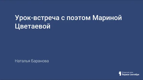 Цели урока: познакомить учащихся с личностью и трагической судьбой Марины Цветаевой; вызвать интерес к ее творчеству; дать представление о своеобразии поэтической манеры поэтессы.