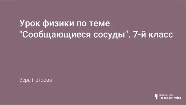 Учащиеся знакомятся с законом сообщающихся сосудов, изучают его применение в жизни человека.