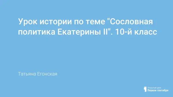 Цели урока: определить основные цели, задачи и направления сословной политики; раскрыть суть сословной политики Екатерины II; выявить итоги преобразований в сословной сфере; показать необходимость законодательства в обозначенной сфере.