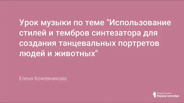 Цель урока: заинтересовать ребят созданием танцевальных портретов людей и животных, используя стили и тембры синтезатора.