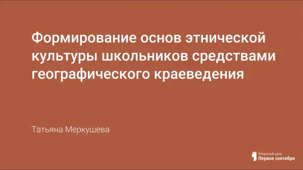 География и краеведение взаимосвязаны. Географическое краеведение входит в учебную программу с 6-го класса, формирует этническую культуру у школьников: путешествия на уроках краеведения, рекреация при знакомстве с материальной и духовной культурой.