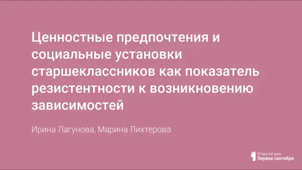 Ценностные предпочтения и социальные установки старшеклассников как показатель резистентности к возникновению зависимостей
