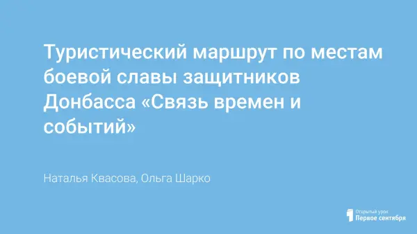 Предлагается разработанный экскурсионный маршрут по местам боевых действий на Донбассе. В пятидневном экскурсионном путешествии учтены основные горячие точки эпохи Великой Отечественной войны 1941–1945 годов и современной войны на Донбассе 2014–2022 гг., памятные мемориалы, посвященные описанным событиям. Приведен небольшой экономический расчет.