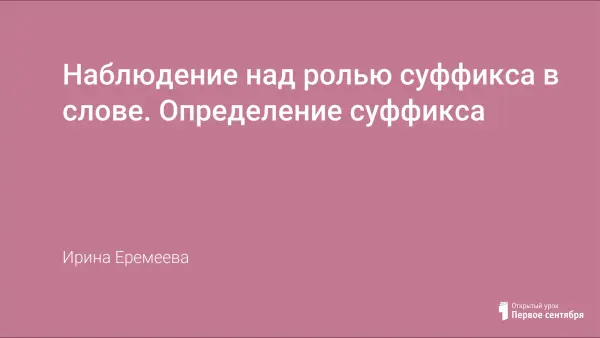 В ходе урока учащиеся развивают умения находить суффиксы в словах, а также определяют роль суффикса в слове.