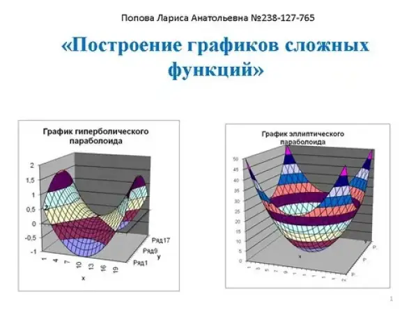 Закрепляются знания по формированию массивов данных в табличной форме, отрабатывается навык построения графиков сложных функций, умение применять полученные знания при решении задач. Рассматривается построение графиков трехмерных поверхностей и сложных тригонометрических функций. Приведена технология выполнения практических заданий. В результате создаются красивые, сложные, интересные графики. Закрепляются практические навыки работы с большими таблицами и построения графиков сложных функций.
