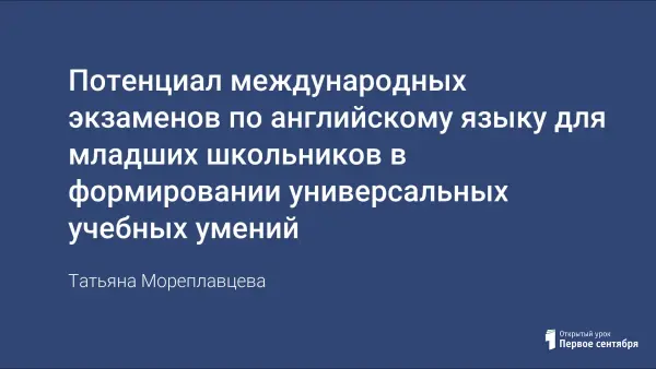 В работе рассматриваются задания международных экзаменов по английскому языку для младших школьников как одно из средств развития и формирования универсальных учебных действий (регулятивных, познавательных, личностных и коммуникативных) на уроках английского языка и во внеурочной деятельности.