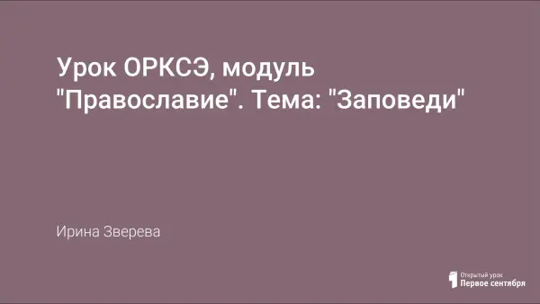 Цель урока: познакомить с понятием "заповедь"; оценить свой поступок относительно заповедей.