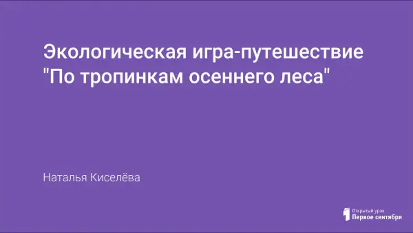 Внеклассное мероприятие «Экологическая игра-путешествие» предназначена для учащихся начальной школы. Мероприятие направлено для формирования у детей бережного отношения к лесу, расширения знаний об осенних изменениях в живой и неживой природе. Учащиеся путешествуют по разным полянам, выполняя разнообразные задания познавательного характера. Также в ходе путешествия участники рассказывают стихи, придумывают экологические знаки, отгадывают загадки, слушают советы Старичка-Лесовичка.