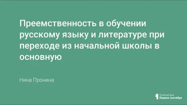 В статье рассматриваются вопросы преемственности в обучении русскому языку и литературе при переходе из начальной школы в основную. Русский язык и литература - одни из наиболее сложных и трудоемких предметов в курсе средней школы, а потому соблюдение одного из основных принципов дидактики - принципа преемственности, необходимо. Изучение русского языка и владение русским языком – эффективный путь культурного воспитания человека, начало которому положено в начальной школе.