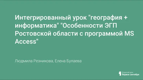 Интегрированный урок "география + информатика" "Особенности ЭГП Ростовской области с программой MS Access"