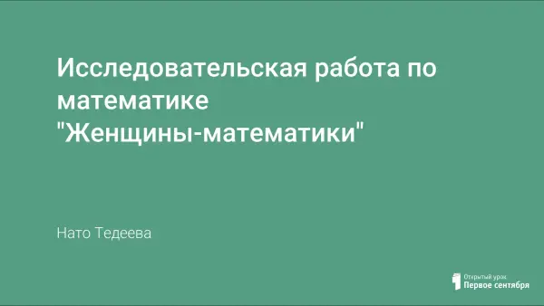 Данная исследовательская работа посвящена женщинам-математикам. Эта тема выбрана неслучайно. На протяжении всей моей школьной жизни учителями математики были только женщины. И, тем не менее, на уроках математики мы изучаем теоремы, которые носят мужские имена (теоремы Виета, Пифагора, Фалеса).