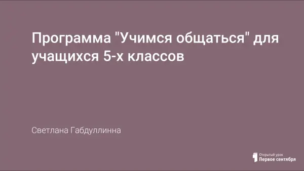 Программа курса рассчитана на 32 часа. Учебный курс включает в себя 2 основных раздела: общение – путешествие в свой внутренний мир; общение – искусство понимать и принимать других. Занятия по программе помогают учащимся осознать неповторимость своей индивидуальности, формируют социальные навыки.