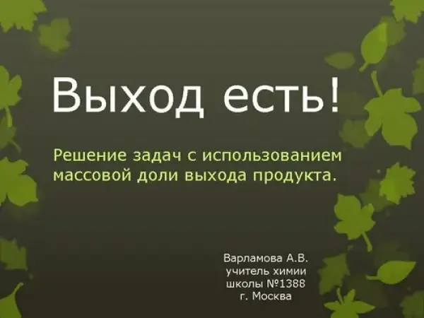 Выход есть! Решение задач с массовой долей выхода продуктов