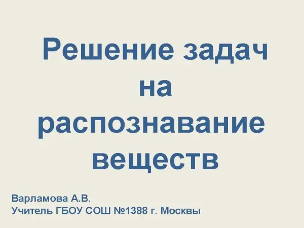 Урок формирует у учащихся осознанное обобщенное умение распознавать вещества. Создана презентация, имеющая следующие особенности: сформулирована проблемная ситуация – распознавание растворов веществ; представлена традиционная форма фиксации результатов эксперимента в виде таблицы; используется форма виртуальной лаборатории; стимуляция учащихся к составлению плана распознавания веществ.