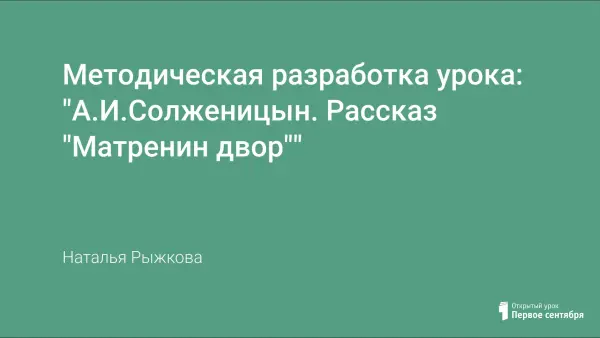 Цели урока: провести анализ рассказа для осмысления образа Матрены как праведницы земли, вырабатывать навыки анализа текста в единстве формы и содержания, закрепить навыки самостоятельной работы; формировать уважение к таким нравственным ценностям как доброта, милосердие, чуткость, человечность, совесть, ответственность за свои поступки.