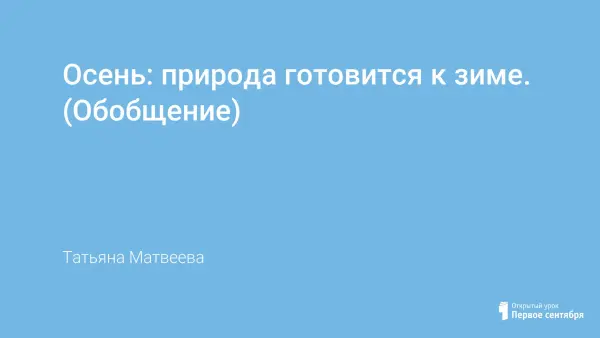 Открытый урок окружающего мира по программе «Школа-2100». Цель урока: повторить признаки осени; учить давать характеристику времени года; учить устанавливать связь жизнедеятельности растений и животных осенью. На протяжении урока осуществляется экологическое воспитание детей.