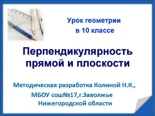 Урок формирует умение читать чертеж, применять теоретические положения темы при решении задач на доказательство, навыки решения ключевых задач на перпендикулярность прямой и плоскости, развивает пространственное воображение, логическое мышление, самостоятельность и творческое отношение к выполнению заданий, воспитывает информационную культуру.