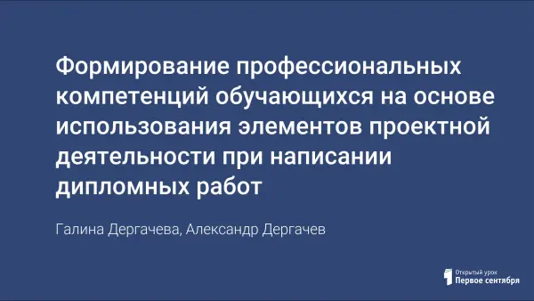 Формирование профессиональных компетенций обучающихся на основе использования элементов проектной деятельности при написании дипломных работ