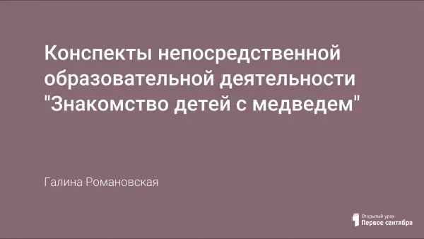 Занятие устанавливает с детьми эмоционально-положительный контакт и вызывает интерес к совместной со взрослым деятельности. Обеспечивается личностно ориентированное взаимодействие с каждым ребенком. Ребята знакомятся с игрушкой, изображающей медведя. Организуется игровая ситуация, при которой дети запоминают клички медведя (Мишутка), и формируется умение принимать воображаемую ситуацию.