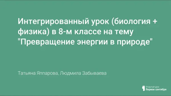 Интегрированный урок (биология + физика) в 8-м классе на тему "Превращение энергии в природе"