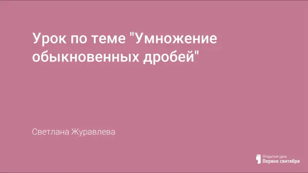 Урок изучения нового материала, первый (из четырех) по теме "Умножение обыкновенных дробей". На уроке применяется метод проблемного обучения.