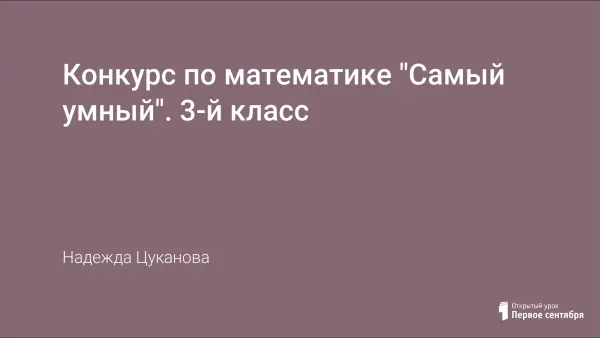 Цели урока - привить любовь к предмету, научить самостоятельно добывать знания, логически и нестандартно мыслить. Задания к конкурсу составлены с учетом уровня подготовки детей. Эти задания не требуют специальных математических знаний (достаточно уметь складывать, вычитать и умножать в пределах сотни), поэтому их может выполнить любой учащийся 3-го класса.