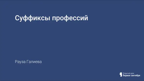 Цель урока: закрепить у детей навыки словообразования, правильно пользоваться суффиксами при образовании названий профессий; учить детей выделять суффиксы в словах.